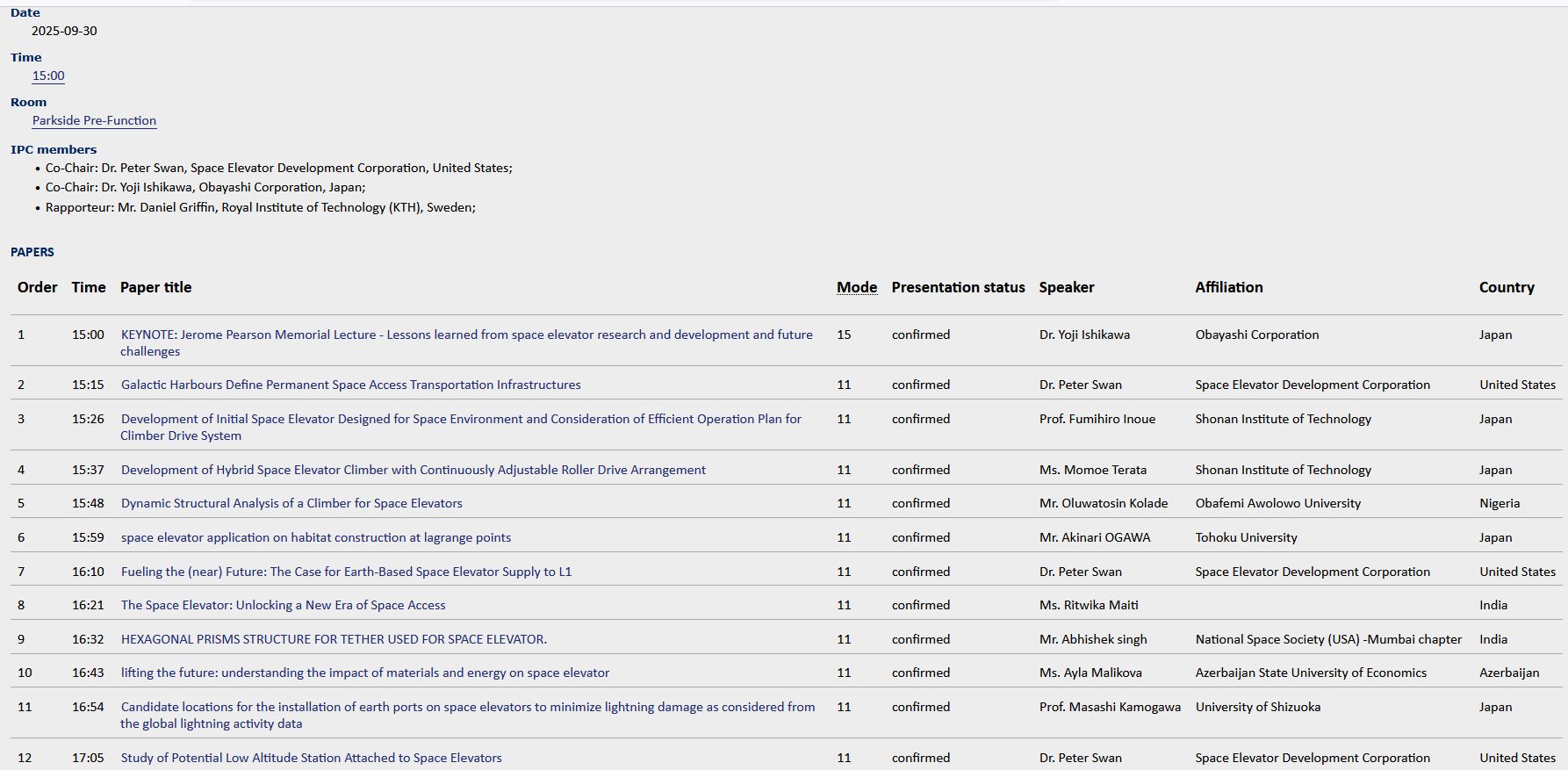 The full conference schedule can be found at https://iafastro.directory/iac/browse/IAC-25/
