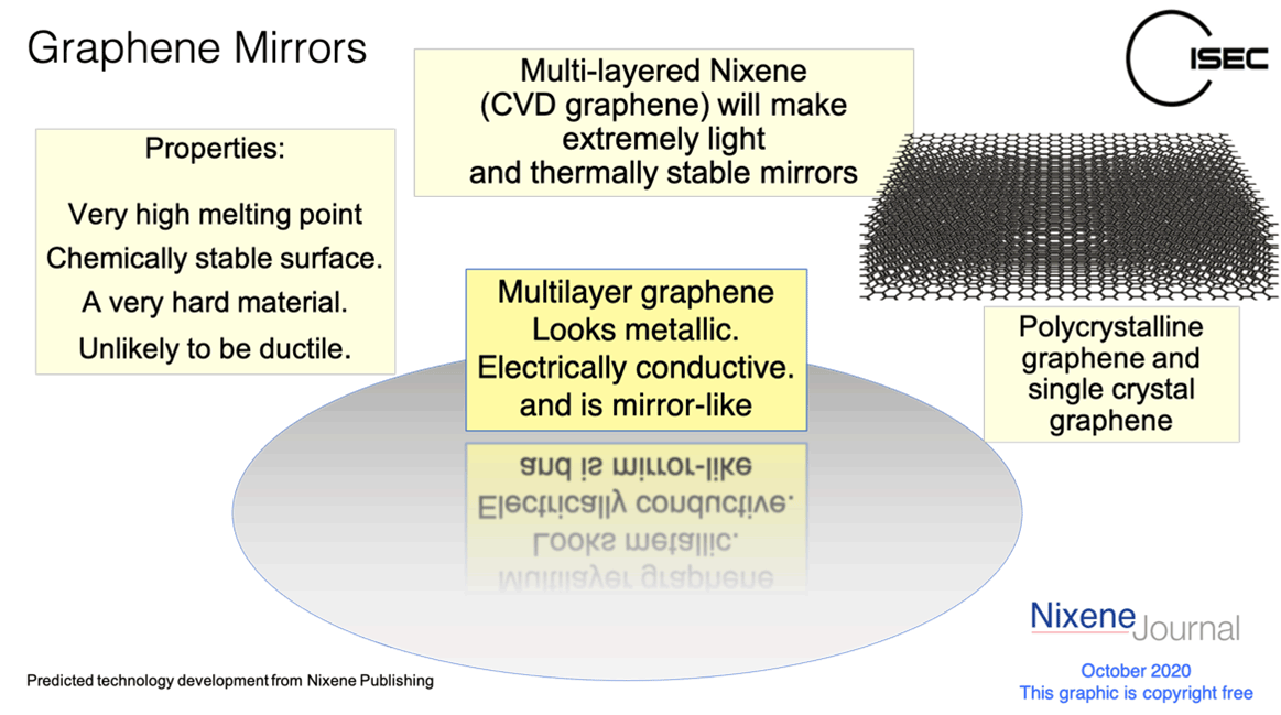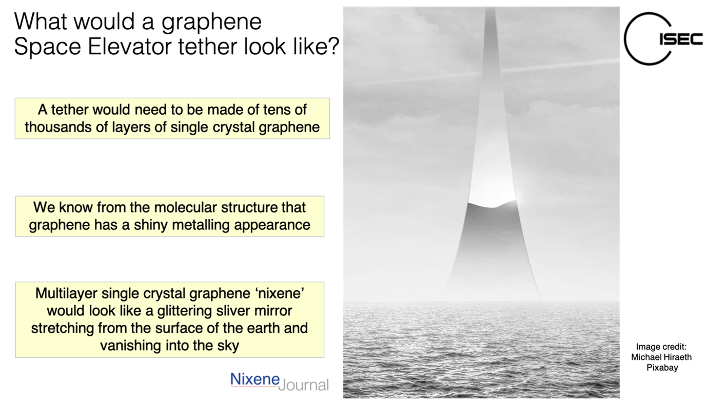 This means bulk, multi-layered graphene will look like a shiny metallic mirror. This bulk material is what will be used to make the space elevator tether.