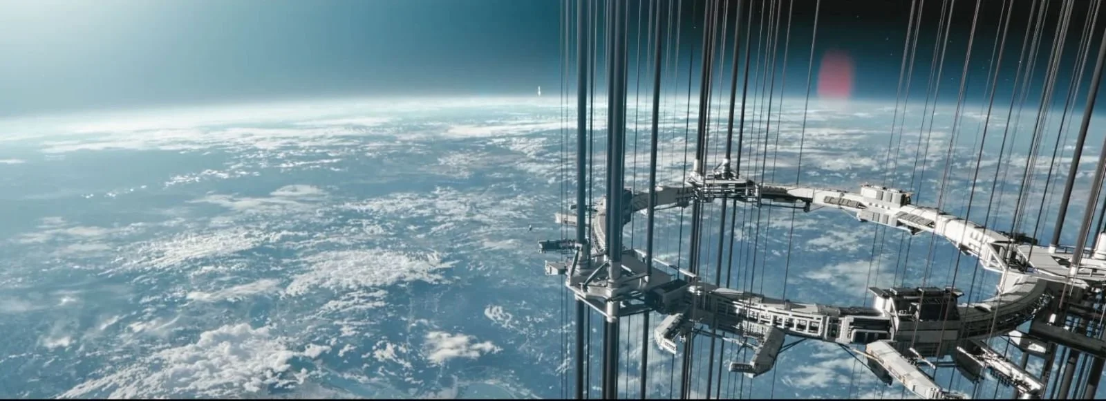 1. Aniara (2018). This is a fairly low budget Swedish movie of which there is an English dubbed version. The first scene after the opening credits shows a space elevator ascending to dock with a spacecraft headed for Mars.